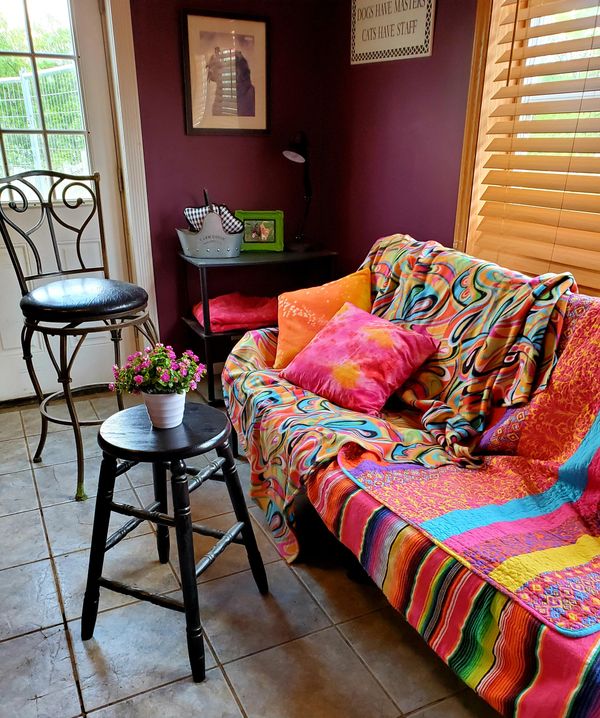Our office is now an awesome little den, with a comfy sofa for extended cuddle time. It's a great place to snuggle up and watch a movie on Netflix while chowing down on some puppy popcorn!